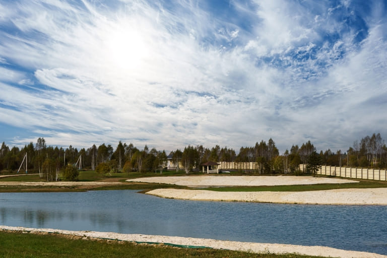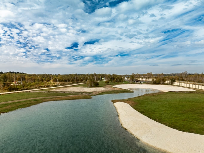 Внутреннее благоустройство делает жизнь в поселке комфортной, безопасной и интересной для каждого члена семьи — рыбалка, пикники, спорт, прогулки и игры на свежем воздухе.